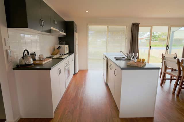 No one likes to feel like a helicopter on holidays. We understand you just want to relax with family and friends and let the kids (including the four legged ones) enjoy the space. This is where Elandra shines. Not only does she have four large bedrooms and plenty of internal space but both her front and rear yard are fully enclosed separately, the rear yard with fences over 6 foot high. This means that you can relax, no one is jumping or scaling fences and getting into any mischief while you are enjoying some local wine and cheese on the back deck. Fully equipped with all the mod cons expected in a modern holiday home Elandra sits on a peaceful street in the Long Beach area of Robe. The beach, with it's 13km of gently breaking waves, is a mere five minute walk away and is dog and kid friendly as well so everyone can get the exercise they need and you can enjoy some peace.