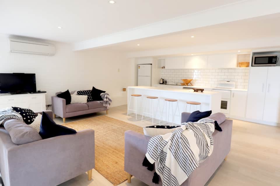 Walk out and across the road onto the sheltered and gentle Hoopers Beach or turn right and enjoy the coastal cliff top walk all the way to the outlet and further to Long Beach. A short five minute stroll to the left will have you enjoying cinemas, restaurants, cafes and shopping in no time. Although Anroka is a sprawling family holiday home the age of the property also lends itself just as well for a romantic hideaway where guests are welcome to use the top storey only and benefit from a generous price discount.