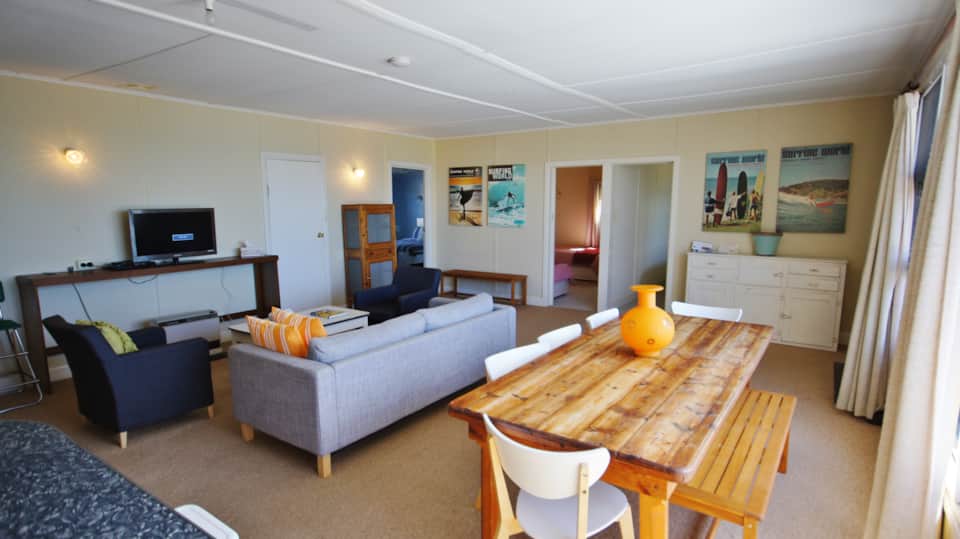 Enjoy a care free holiday in this retro styled 1970's beachside shack. Sleeping six guests in three bedrooms the 180 degree ocean view of stunning Long Beach will entice you to stay an extra day. Combining the cool style of the building with a new interior fit out 'The Retro' is a relaxed combination of style and comfort. Children will love the easy access to the shallow waters of Long Beach and parents will enjoy the simplicity of enjoying the ocean no matter what the weather. Take the cliff top walk with it's panoramic Guichen Bay views into the town centre in under 30 minutes or turn right and walk the entire 17km of Long Beach in an afternoon.